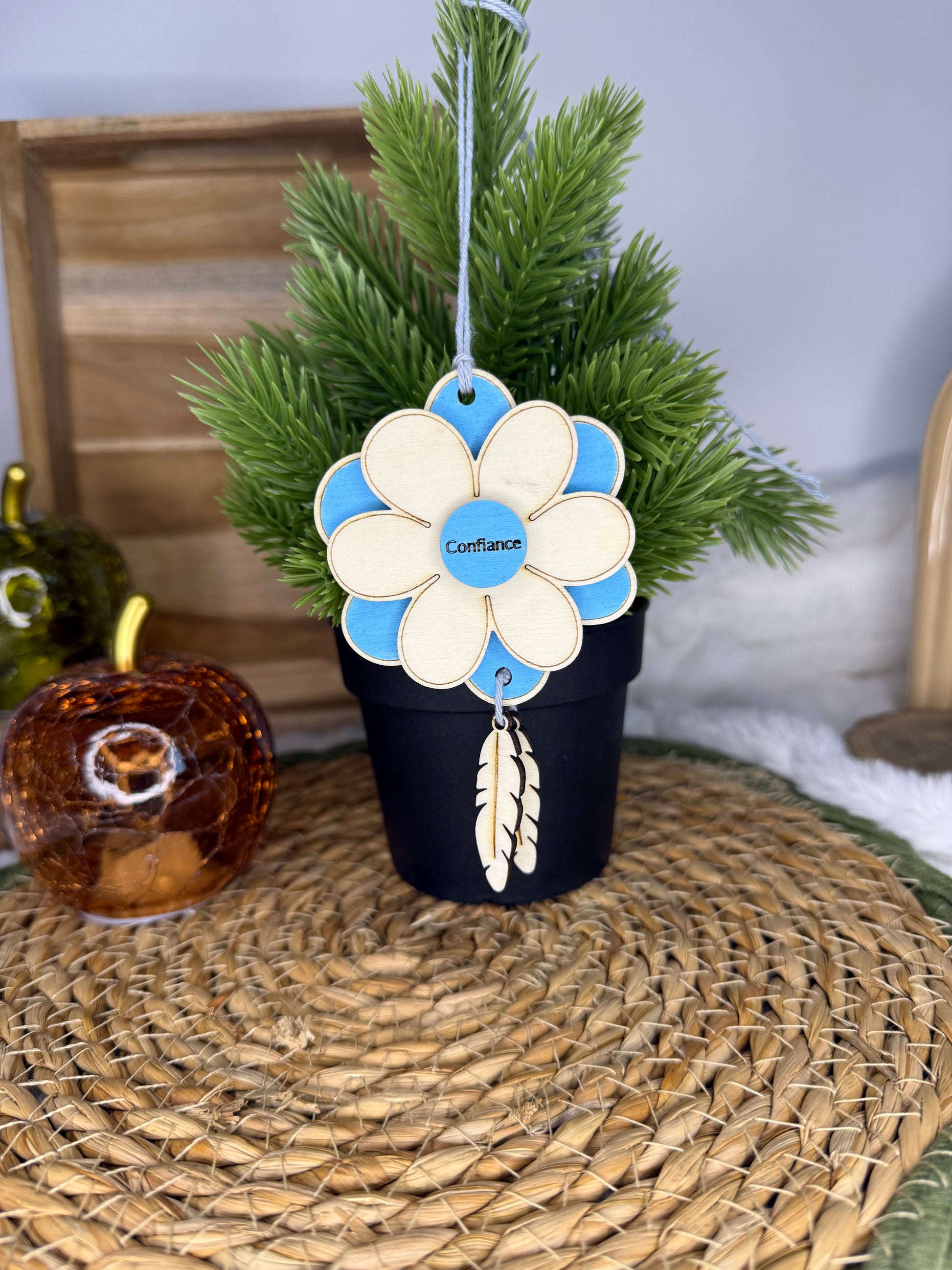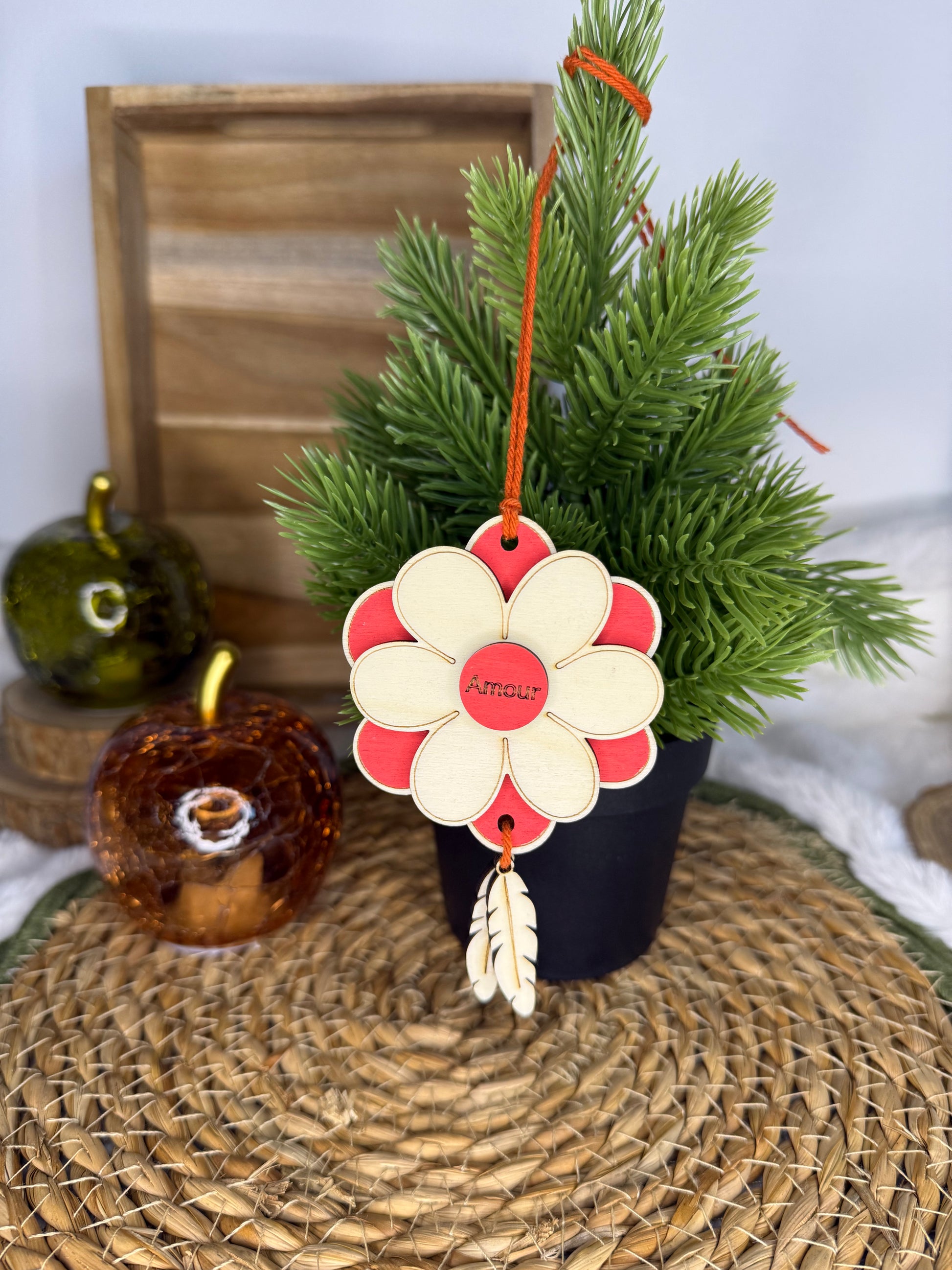 Apportez une touche de douceur et de symbolique à votre voiture avec notre décoration en bois à suspendre au rétroviseur intérieur 🚗✨