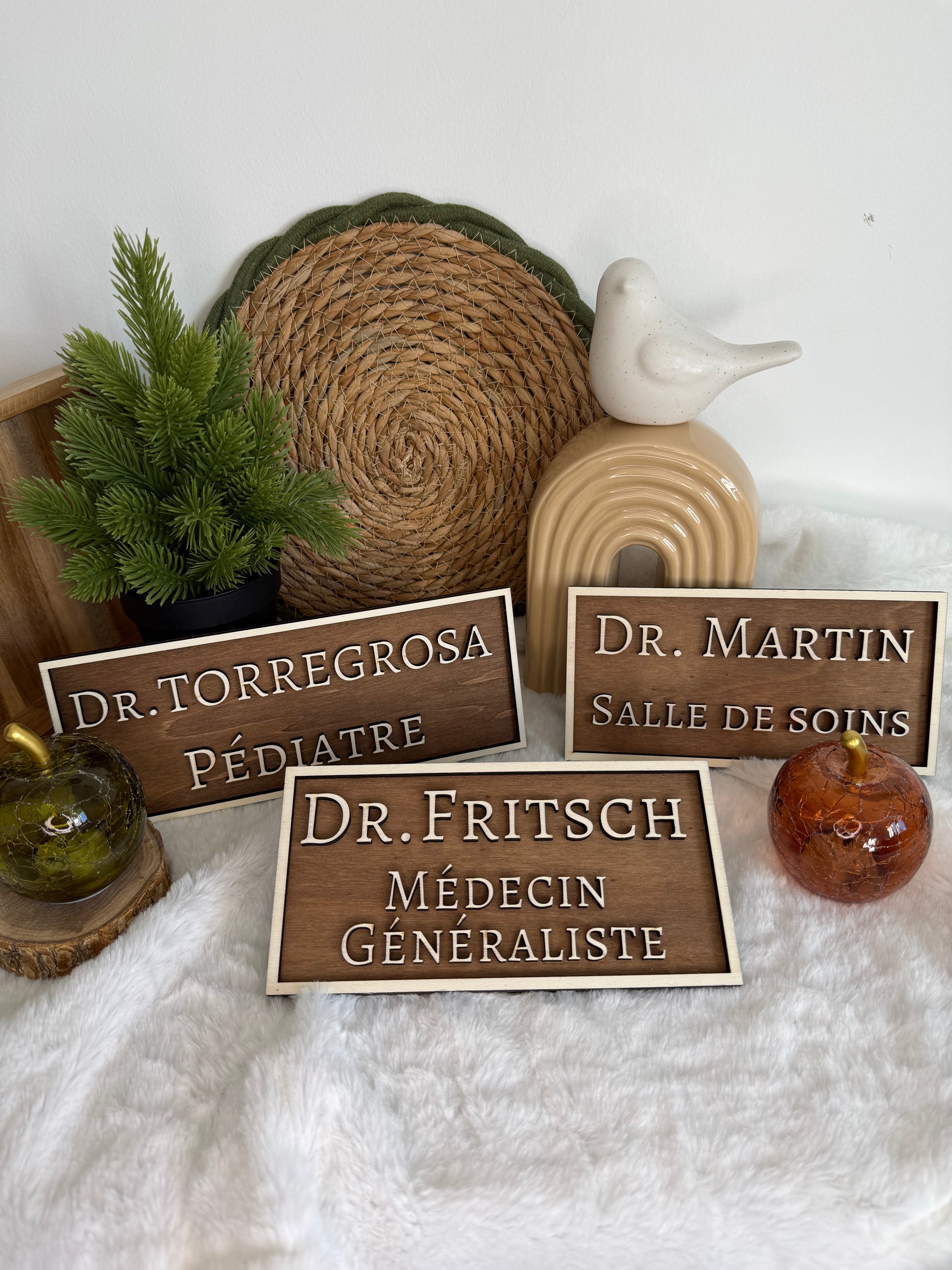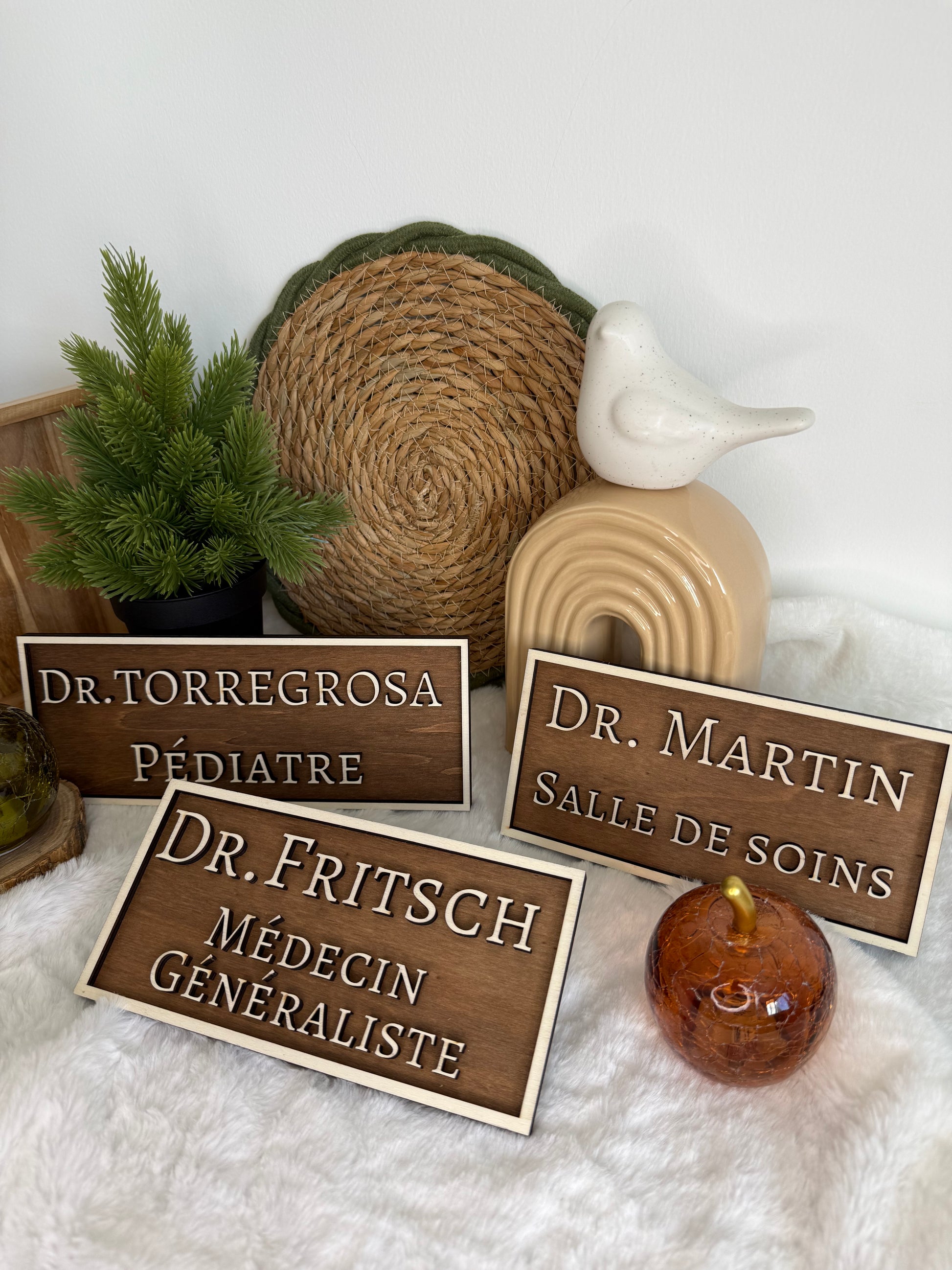 Élégants et durables, ils affichent clairement le nom et le métier pour informer et orienter vos clients dès leur arrivée.